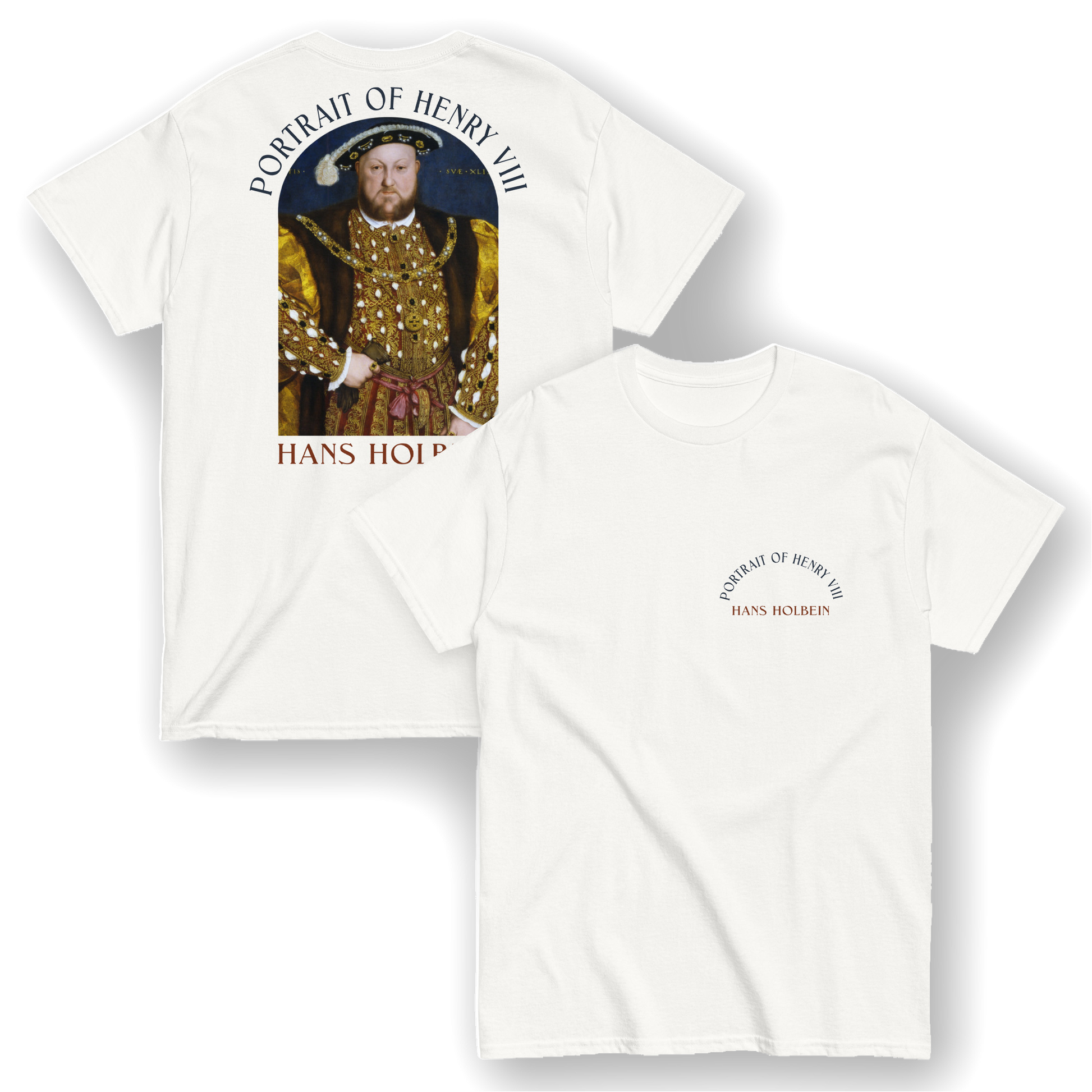 The Henry VIII t-shirt is more than clothing—it’s a collectible art shirt that honors Holbein’s mastery and the powerful image of one of history’s most famous monarchs. Whether you’re looking for a Holbein tee, a Renaissance portrait shirt, or a unique gift for art lovers, this design blends history, art, and fashion. A must-have addition to any collection of artistic t-shirts and gallery-inspired apparel.